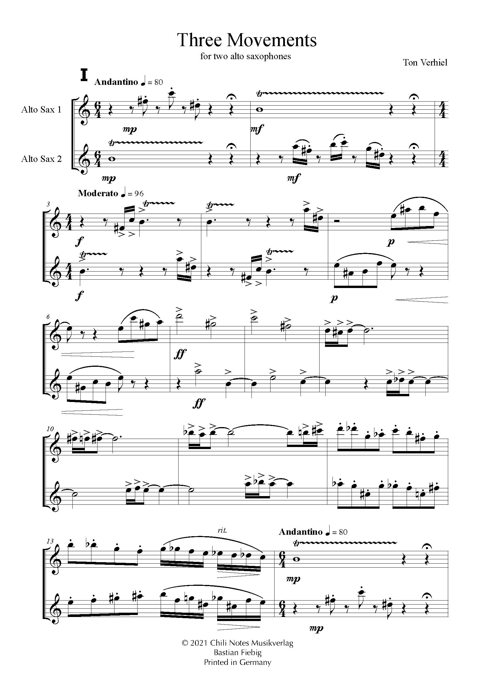 Three Movements for two Alto Saxophones VERHIEL T.
