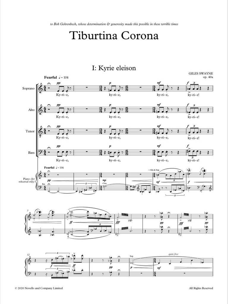 Vocal Score. A re-working of Swayne’s 1985 Missa Tiburtina with additional saxophone quartet. Described by the composer as “a blackly ironic setting of the Latin Mass”, the piece was composed during the Covid-19 pandemic and is “a prayer for sanity”. Suitable for choirs of advanced ability.