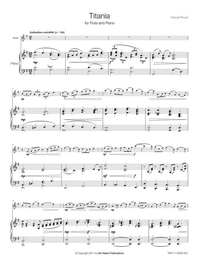Pascal Proust est l'un des compositeurs français les plus renommés dans le domaine de la pédagogie instrumentale. La série de compositions qu'il a produite pour De Haske est régulièrement élargie. Proust a écrit Titania pour les élèves de flûte avancés abordant le deuxième cycle de leurs études. Son style très accessible convient parfaitement aux élèves et plaira tout autant au public, ce qui en fait un morceau idéal pour des concerts ou des concours.