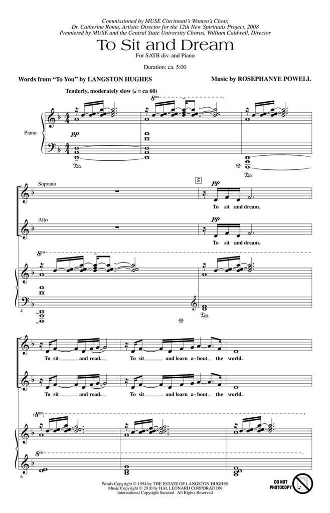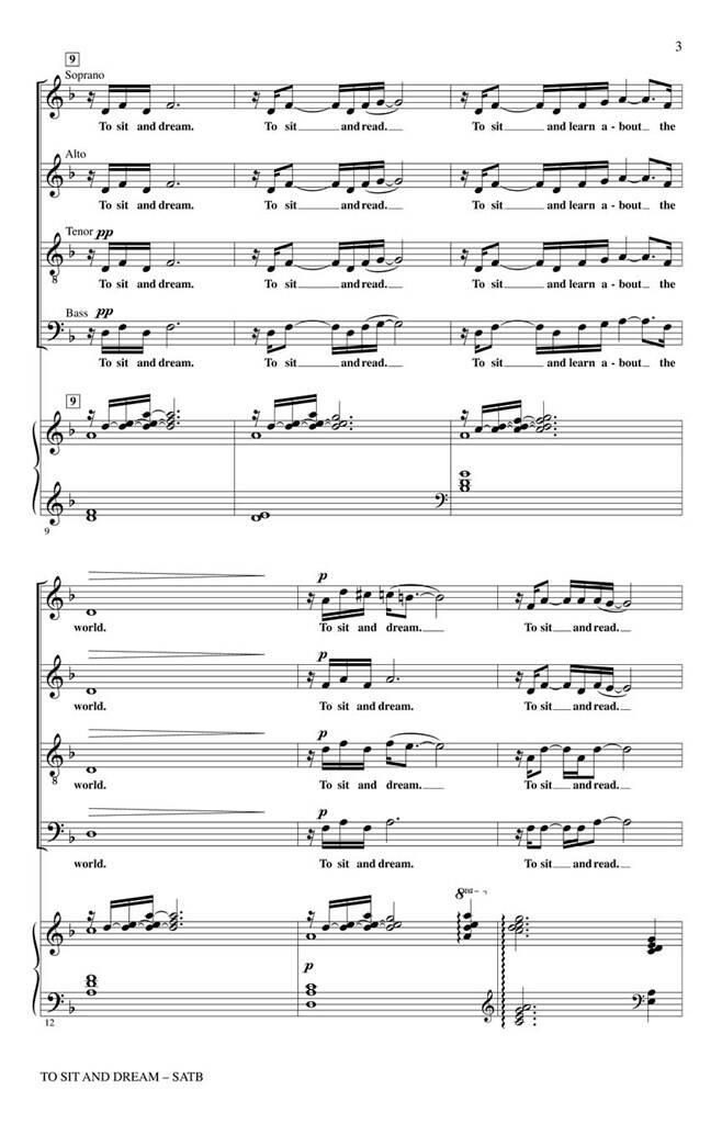 « S’asseoir et rêver, s’asseoir et lire, s’asseoir et apprendre sur le monde » Ces mots tirés d’un poème de Langston Hughes nous invitent à tendre la main vers des rêves d’un monde meilleur et d’une société plus juste. Le cadre choral bluesy sera un excellent choix pour les chorales mixtes du lycée et plus. Disponible : SATB divisi. Durée : environ 17h00.
