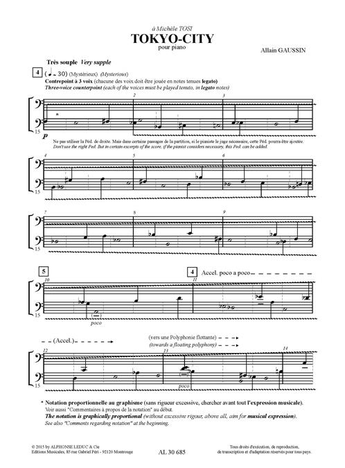 Composed a decade later, Tokyo-City for solo Piano draws on the same inspiration, fuelled by several stays in Japan. Gaussin sets out to reproduce the various sensations he experienced during his walks around the Japanese megalopolis: a fear of being swallowed up by its vastness gives way to a bedazzlement in the face of a buzzing universe awash with harmonies and colours.