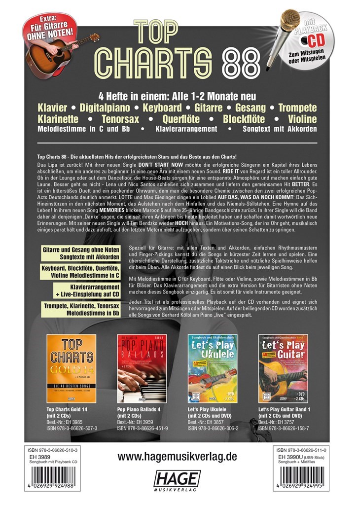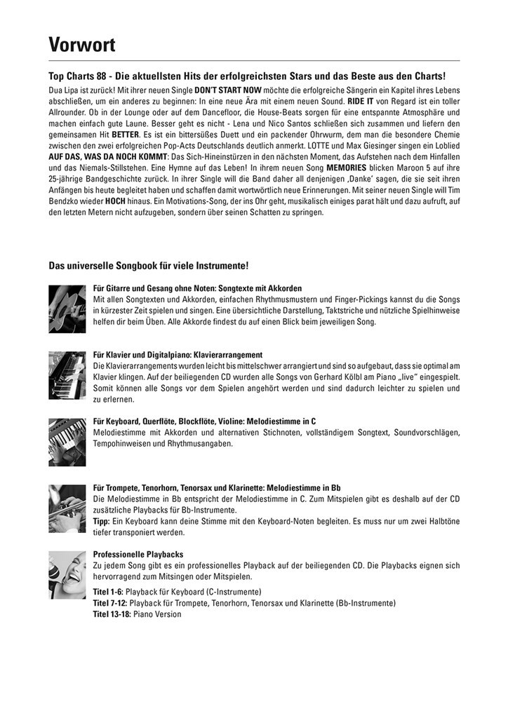 Professionelle Playbacks Zu jedem Song gibt es ein professionelles Playback auf der beiliegenden CD. Die Playbacks eignen sich hervorragend zum Mitsingen oder Mitspielen.