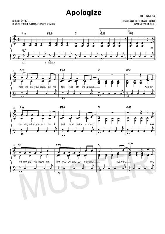Toutes les bonnes choses viennent par trois ! Top Charts Gold 3 contient également une ingénieuse collection des 40 meilleures chansons pop de ces dernières années, dans des arrangements faciles à jouables, légers à moyens-lourds. Cette superbe sélection de chansons pop et rock de Robbie Williams, James Blunt, Nelly Furtado, Silbermond, Juli, Christina Aguilera, Rosenstolz, Guns N’Roses, Herbert Grönemeyer, Billy Joel, Ich + Ich, Red Hot Chili Peppers, Bryan Adams et bien d’autres vous inspirera.
