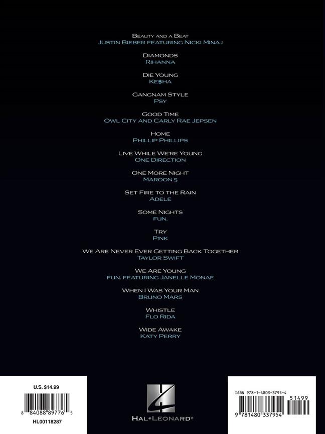Apprenez à jouer 16 grands succès avec ce tout nouveau recueil de chansons, avec des arrangements d'experts des Top Téléchargements de 2012 pour Piano, Voix et Guitare.