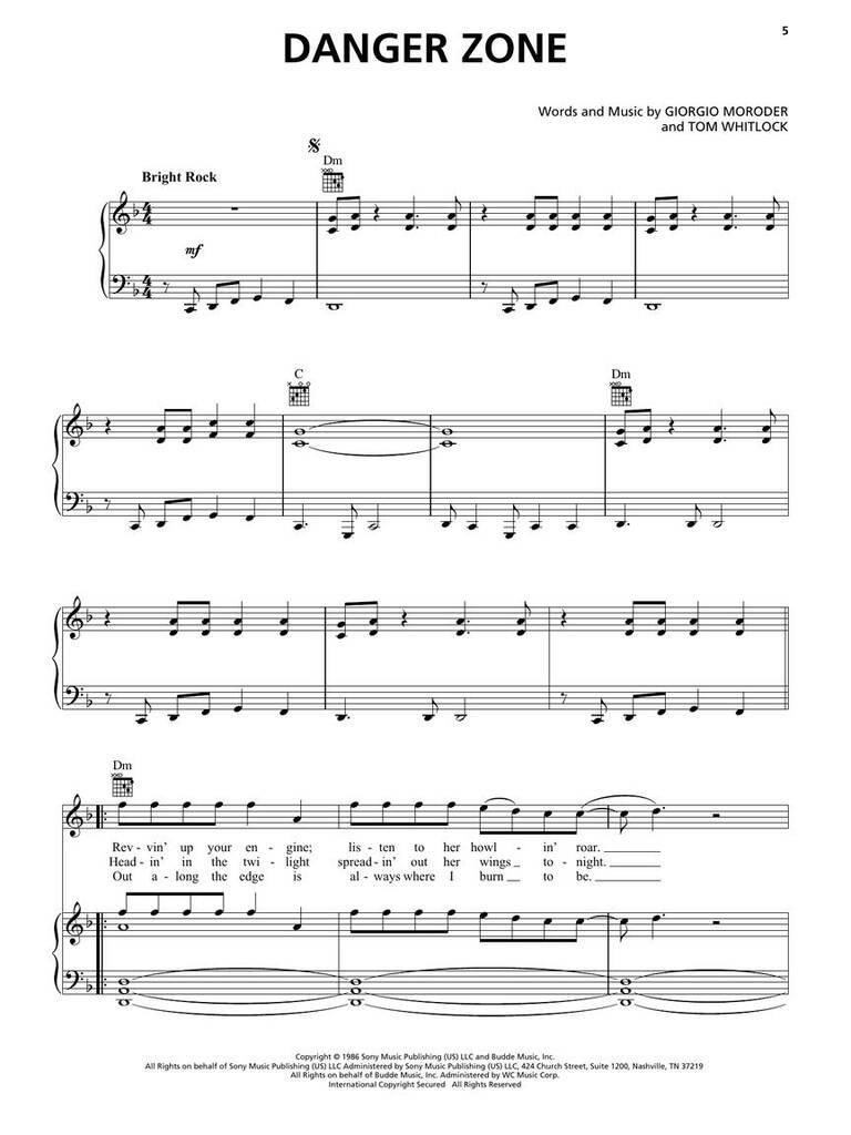 The sequel 30 years in the making, Top Gun: Maverick was worth the wait as audiences flocked back to theaters to see Tom Cruise return to action. Like the original Top Gun, the soundtrack is pivotal to its success and features some of today's top hitmakers as well as the iconic original hit Danger Zone. Our folio features seven songs from the soundtrack arranged for piano and voice with guitar chord frames