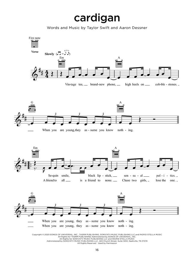 15 of 2020’s biggest chart hits so far, specially arranged for easy guitar with melody line, guitar chord diagrams and full lyrics. Includes smash hits from Lewis Capaldi, Dua Lipa, Taylor Swift, Harry Styles and many more!