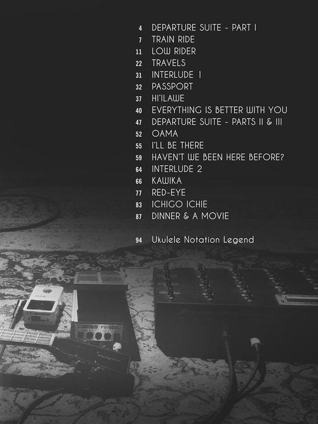 Transcriptions for all 17 tracks from the ukulele wonder's album of original pieces and island tunes from his native Hawaii: Departure Suite - Part I - Departure Suite - Parts II and III - Dinner and a Movie - Everything Is Better with You - Haven't We Been Here Before? - Hi'ilawe - I'll Be There - Ichigo Ichie - Interlude 1 - Interlude 2 - Kawika - Low Rider - Oama - Passport - Red-Eye - Train Ride - Travels.
