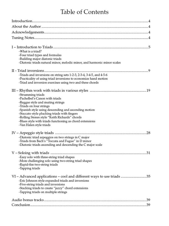 This complete guide to understanding and using triads for rhythm and lead guitar unlocks the mysteries of triads. It includes theory, practical advice, valuable tips, and tons of examples to get you playing rhythm and lead guitar with triads. Many styles are covered - rock, classical, reggae, metal, blues and more! The book includes online access to audio examples for download or streaming.
