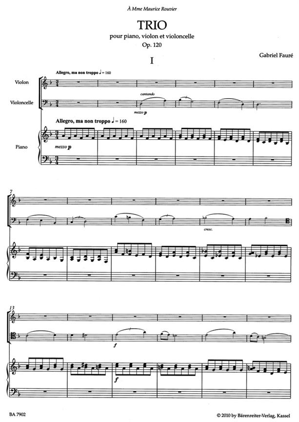 Trio For Piano, Violin And Violoncello Op. 120 FAURE GABRIEL