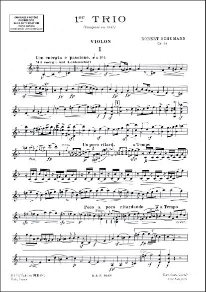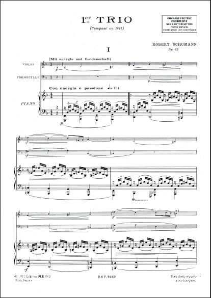 Trio N 1 Op. 63 Vl/Vlc/Pno SCHUMANN