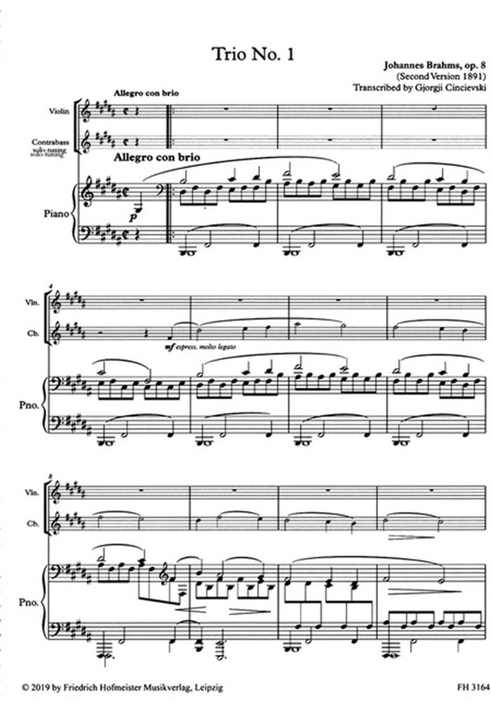 Trio No. 1, Op. 8 BRAHMS JOHANNES