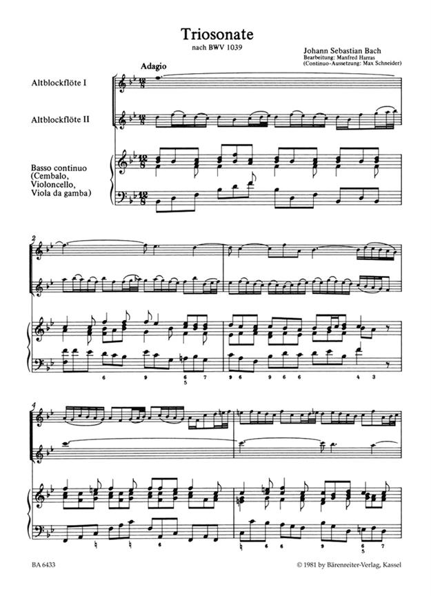 Triosonate B-Dur (Original G-Dur) Für Zwei Blockflöten Und Basso Continuo BACH JOHANN SEBASTIAN