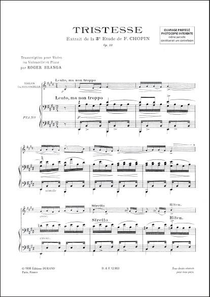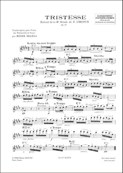 Tristesse Violon Ou Vlc/Piano CHOPIN FREDERIC