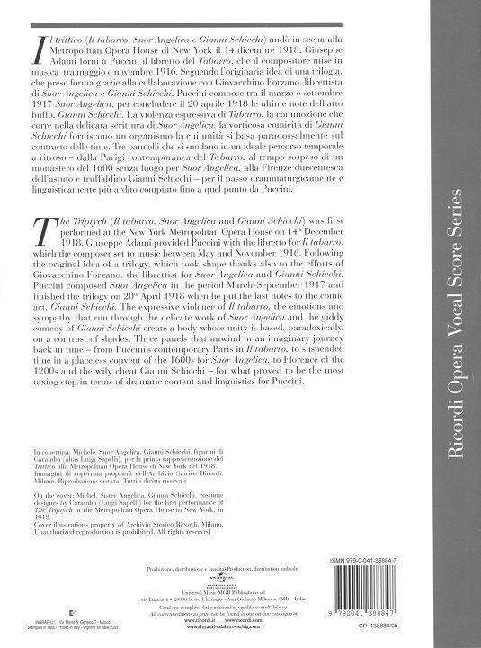 This famous trilogy où Puccini one-act operas, Il tabarroù Suoù Angelica and Gianni Schicchi, nos appears in one complete opera vocal score.