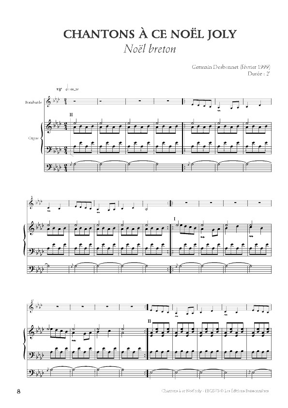 Le recueil comprend une partie de bombarde séparée et des parties séparées de trompette, clarinette et flûte.