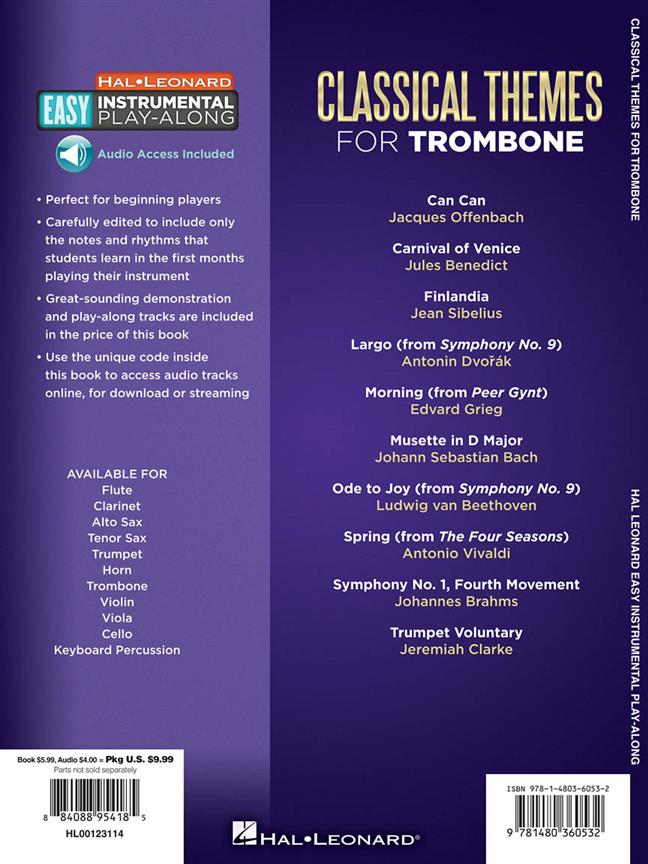 Même les novices se font entendre bien avec Trombone facile Instrumental Play-Along: Thèmes classiques, avec 10 morceaux qui ont été soigneusement sélectionnés et agencés pour instrumentistes de première année.