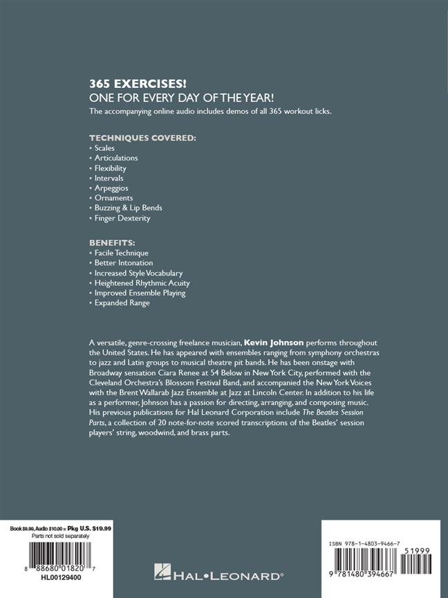 This 52-week, one-exercise-a-day workout program for developing, improving and maintaining Trumpet technique includes access to demo audio tracks online for all 365 workout licks.