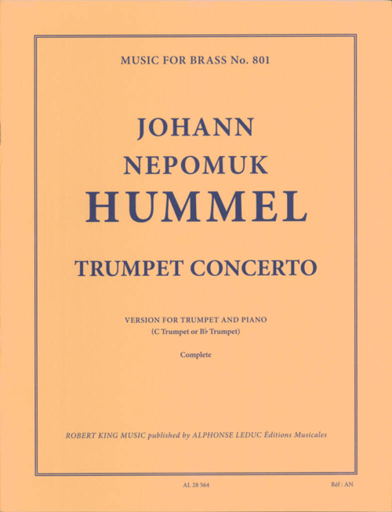 Written in 1803 by Johann Nepomuk Hummel (1778-1837), this Trumpet Concerto in E-flat Major is a classical piece of the Trumpet repertoire. Composed in the spirit of Mozart, and initially for the keyed-Trumpet, it was re-discovered in 1958 by a Yale student after 150 years of inertia due to the obsolescence of the instrument for which it was made. This edition offers a transposition in E-flat Major (initially in E Major) adapted to the instruments in use today. The other instruments to be involved in this concerto are a Flute, two Oboes, two Clarinets, two Bassoons, two Horns, Timpani and Strings. Hummel's Trumpet Concerto begins with an orchestra onlyfirst movement, in a sonata theme which is repeated with the inclusion of the soloist. This Allegro Spirito sounds reminiscent of the Haffner Symphony (No. 35 in D Major) by Mozart but distinguished itself by a second theme. The second movement, Andante, is more melodic, with the trumpet which holds long notes. Finally, the Rondo offers a blissful and bright end to the Concerto. Former student of Mozart, Johann Nepomuk Hummel (1778-1837) was a brilliant composer, pianist, conductor and teacher. Evolving at the same period as Beethoveen, he became as famous as him and wrote numerous concertos (for Piano, Oboe, Trumpet, Violin and others), operas and some wind music pieces.