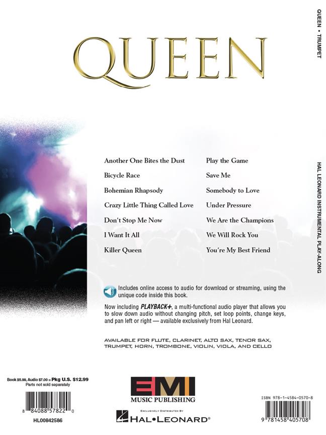 Solo arrangements instrumentaux avec accompagnement CD pour 14 chansons de Queen séminales.