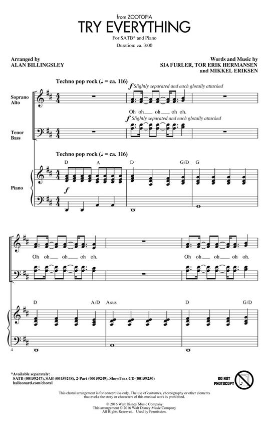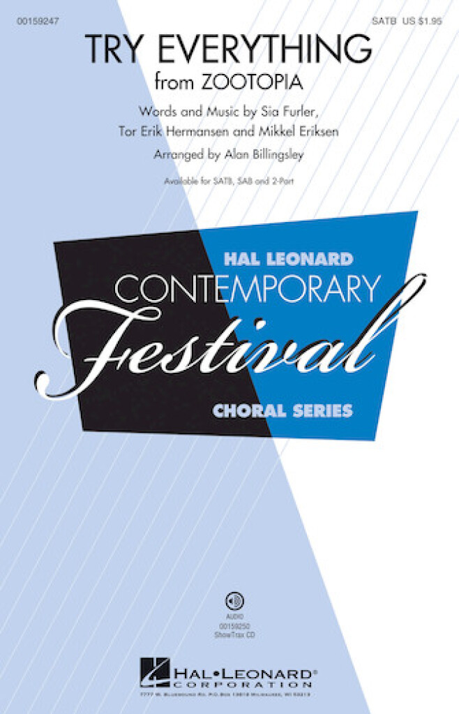 Tiré du film d’animation Disney Zootopia, ce single optimiste nous rappelle : « N’abandonnez pas ! Ne cède pas ! » Ce message positif encouragera vos chanteurs à travailler dur et à continuer d’essayer, quoi qu’il arrive. Un message fantastique pour les jeunes chorales, les remises de diplômes et autres programmes de fin d’année !