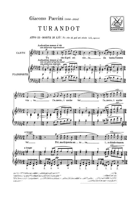 Tu Che Di Gel Sei Cinta Dall’Opera Turandot PUCCINI GIACOMO