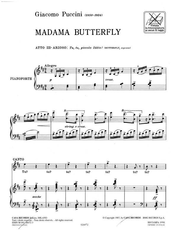 Tu Tu Piccolo Iddio! PUCCINI GIACOMO