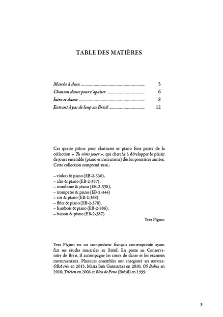 Ces pièces sont conçues pour être jouées par des instrumentistes de même niveau. Elles permettent au jeune public en apprentissage de prendre goût à la musique de chambre sans être accompagné d'un professionnel
