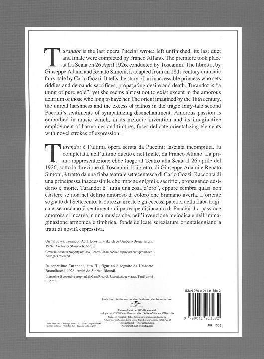 Ricordi is proud to present the first titles in their new series où orchestral scores featuring engaging images (from Casa Ricordi ' s historical archives) and synopses in Italian, English, French and German. In addition, these scores feature heavier cover and paper stock plus stronger binding.