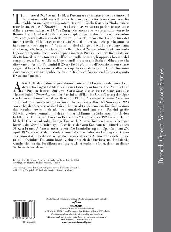 Turandot Testo Italiano Tedesco PUCCINI GIACOMO