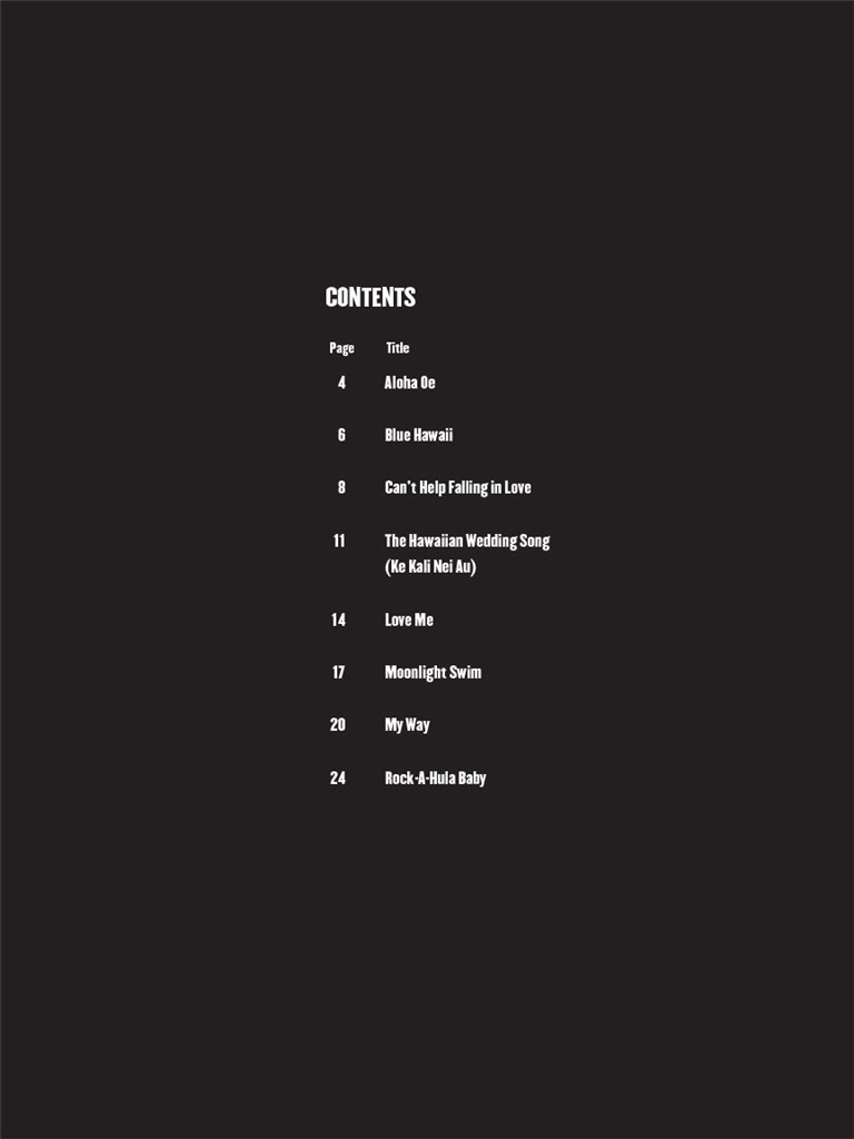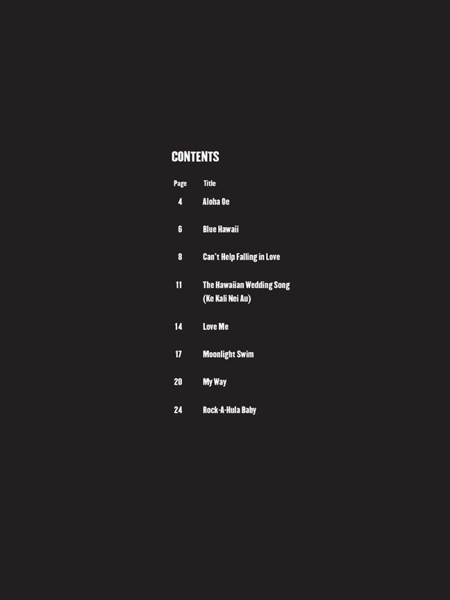 Titres : Aloha Oe - Blue Hawaii - Can't Help Falling In Love - The Hawaiian Wedding Song (Ke Kali Nei Au) - Love Me - Moonlight Swim - My Way - Rock-A-Hula Baby