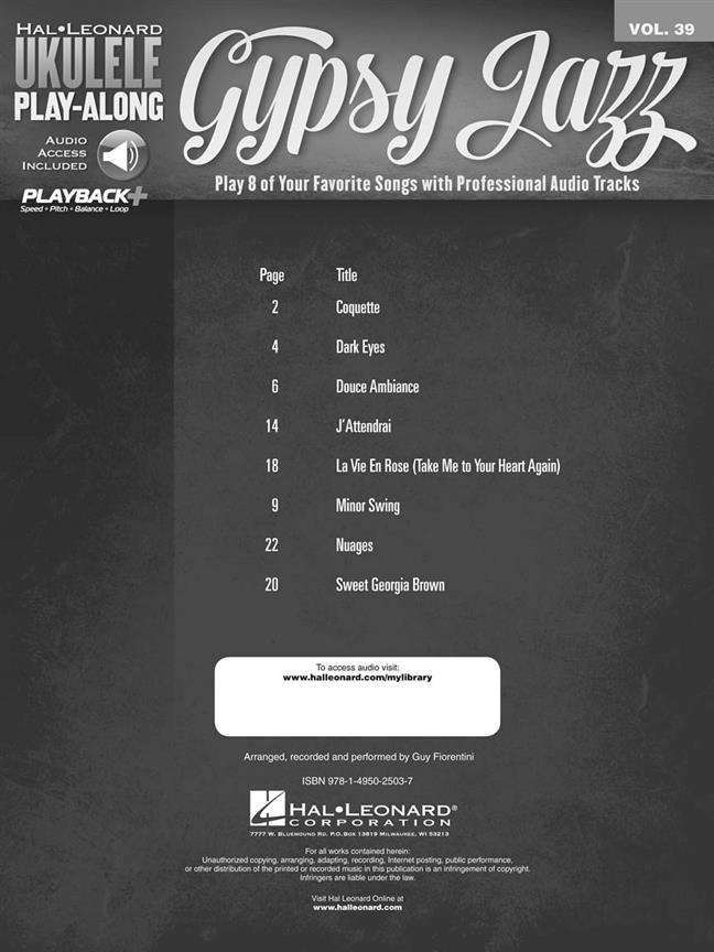 Ukulele Play Along Vol.39 Gypsy Jazz + Online Audio Access