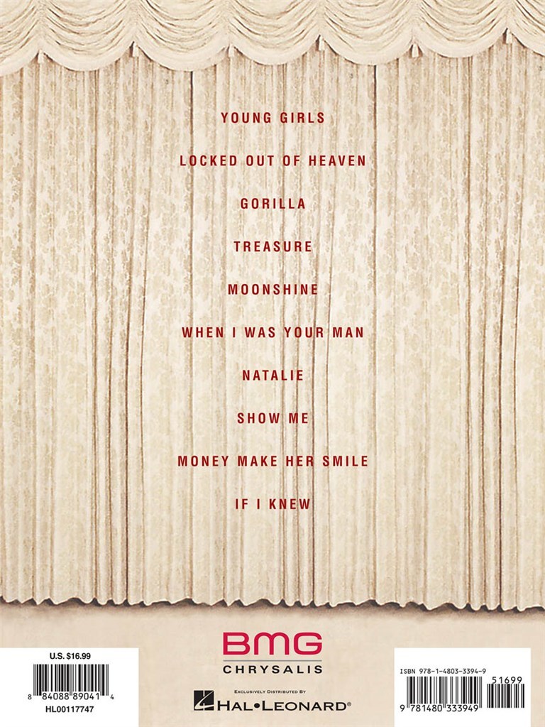 Notre portefeuille comprend les dix "peu orthodoxes" morceaux de cet album, dont le premier single Locked Out of Heaven, plus: Gorilla - If I Knew - Money Make Her Smile - Moonshine