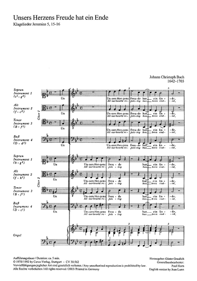 Unsers Herzens Freude BACH JOHANN CHRISTOPH