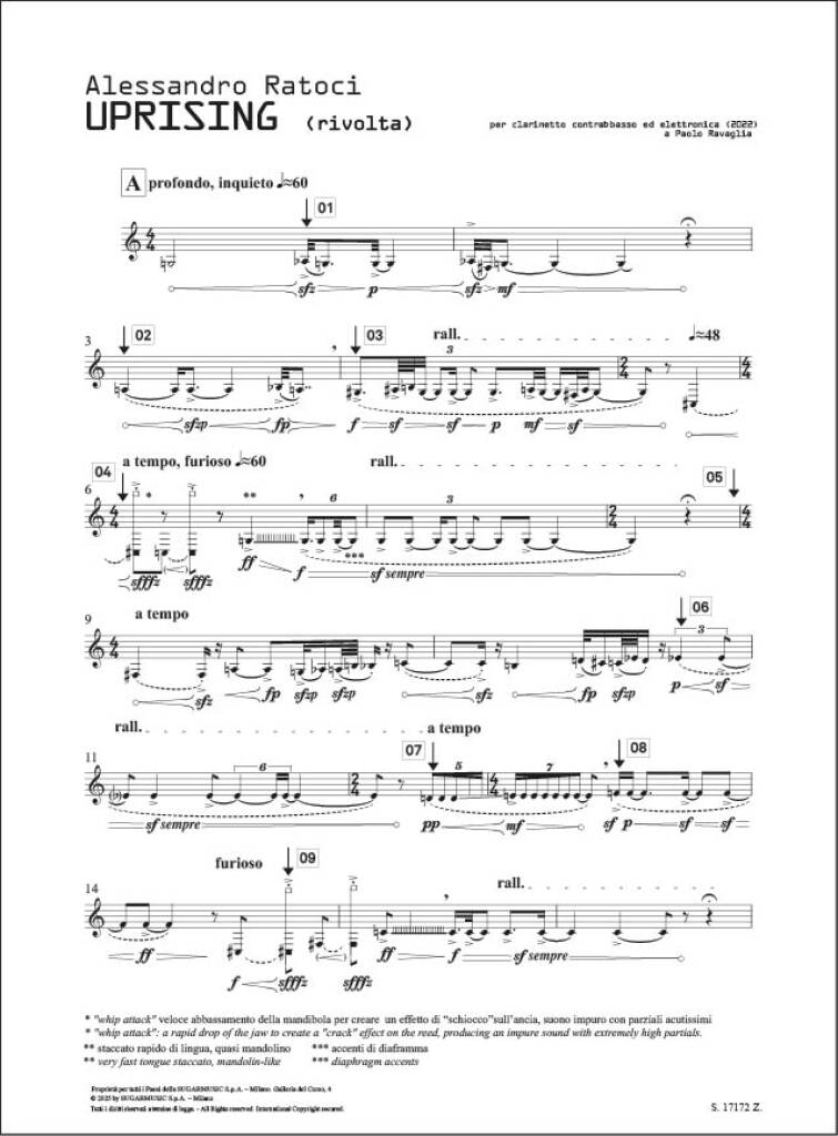• Sous titre : per clarinetto contrabbasso ed elettronica