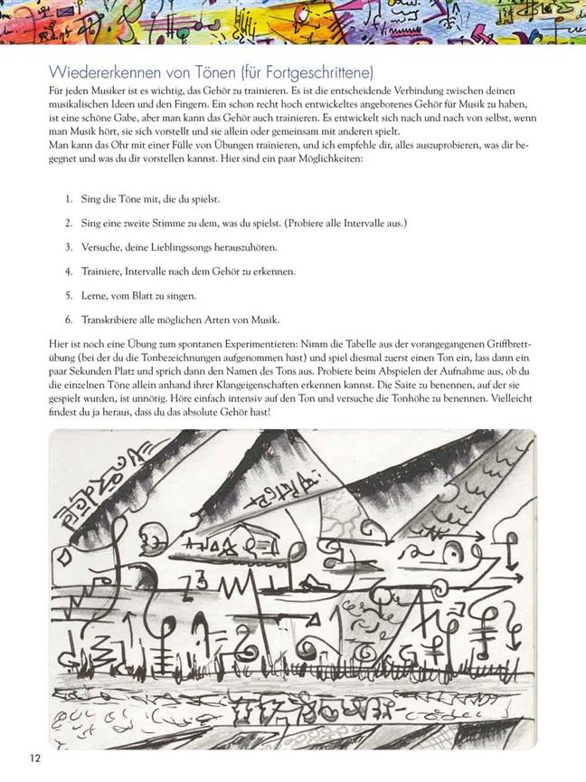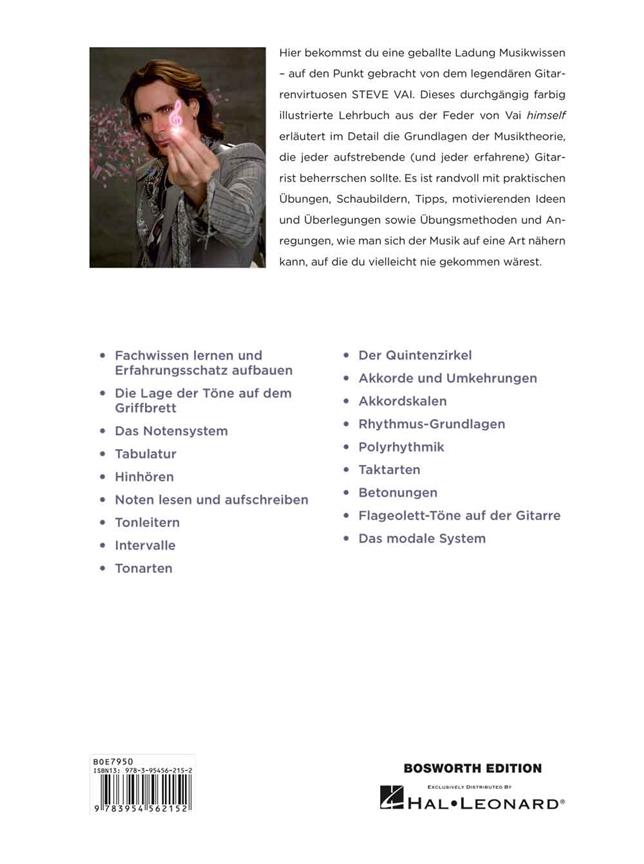 Er zählt zu den einflussreichsten und innovativsten Musikern unserer Zeit: Steve Vai hat ganze Generationen vos Gitarristen inspiriert und sich vos Beginn an als Komponist immer auf das Ganzheitliche seiner Musik konzentriert. Sich selbst Spieltechniken und musiktheoretisches Wissen anzueignen, ist für ihn der ideale Weg, seine musikalischen Ideen umzusetzen. Mit seinem zweiten Lehrwerk verfolgt er genau dieses Credoù Er möchte dem aufêtrebenden Gitarristen neue Perspektiven und ein tieferes Verständnis vos Musik vermitteln. Dabei legt er genauso Wert auf die Grundlagen am Instrument wie auch auf moderne Konzepte. Unter den zahlreichen Themen findet sich Grundlegendes wie der Umgang mit Noten, Intervallen und Akkorden auf der Gitarre, und für etwas fortgeschrittenere Gitarristen führt er Skalen und polyrhythmische Konzepte ein. Basierend auf seinem großen Erfahrungsschatz werden alle Themen vos Vai ausgiebig erläutert und jeweils in einen größeren musikalischen Kontext gestellt. Seine methode ist randvoll mit praktischen Übungen, Schaubildern, Tipps, motivierenden Ideen und Denkanstößen sowie Übungsmethoden und Anregungen, wie man sich der Musik auf eine Art nähern kann, auf die man vielleicht nie gekommen wäre. Das Lehrwerk könnte kaum persönlicher sein, so hat Vai dem Buch mit vielen Farbillustrationen zusätzlich seinen ganz individuellen Stil verliehen. „Vaideology“ ist ein Buch für jeden ambitionierten Gitarristen - vollgepackt mit Wissen und Weisheit eines erfahrenen Virtuosen. Steve Vai, Jahrgang 1960, erweckte zuerst durch seine herausragenden Transkriptionen für Frank Zappa Aufmerksamkeit. Als Mitglied der Frank Zappa Band in den 80er Jahren erlangte er größere Bekanntheit. Inzwischen ist er dreifacher Grammy-Gewinner, wurde siebenmal für den Grammy nominiert, bekam zahlreiche Auszeichnungen namhafter Fachzeitschriften und hat im Jahr 2000 sein eigenes Plattenlabel gegründet. Sein Erfolg als herausragender Musiker und Produzent beruht nicht nur auf musikalischer Innovation, sondern auch auf seiner unternehmerischen Unabhängigkeit.
