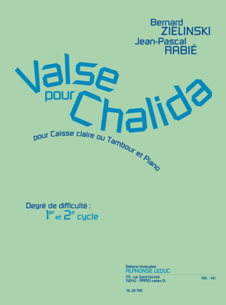 Valse pour chalida pour caisse claire ou tambour et piano. Par Rabie aux editions Leduc. Partition / Livre de chansons pour Batterie