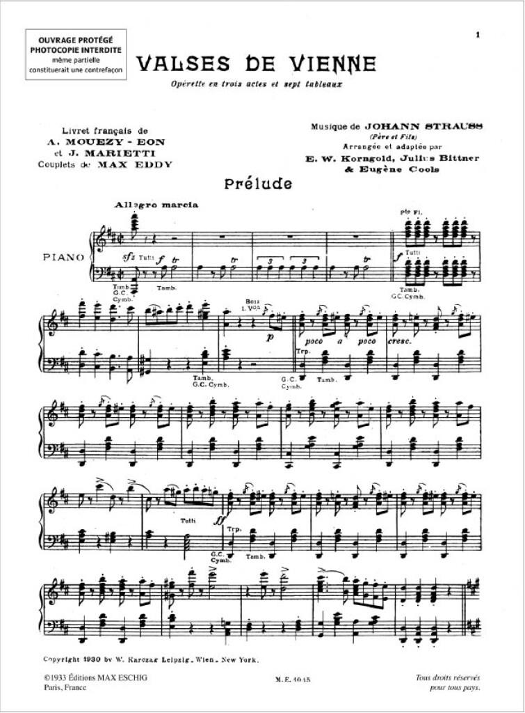 Valses De Vienne Opérette En Trois Actes Et Sept Tableaux D’A. Mouézy-Eon Et Jean Marietti STRAUSS JOHANN (FILS)