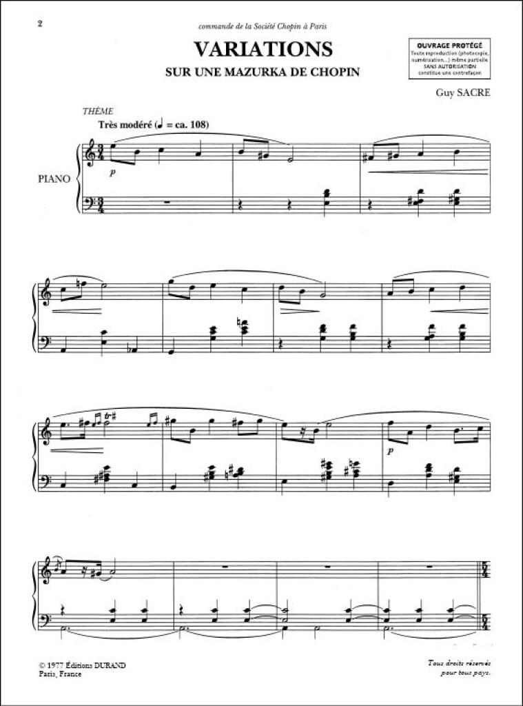 Variation Sur Une Mazurka De Chopin Piano SACRE GUY