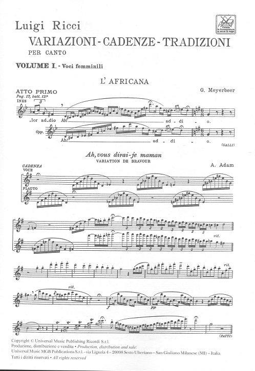 Variazioni – Cadenze Tradizioni Per Canto Vol.1 Voci Femminili RICCI L.