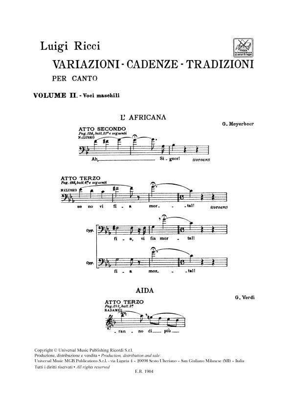 Variazioni – Cadenze Tradizioni Per Canto Vol.2 Voci Maschili RICCI L.