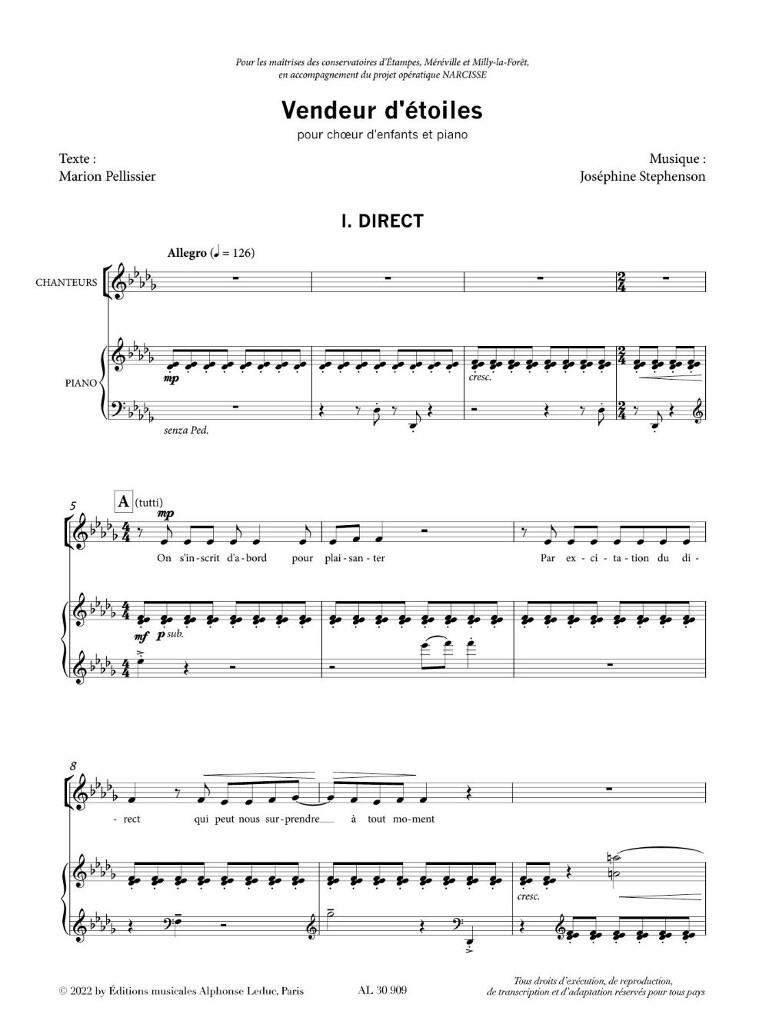 Josephine Stephenson est une compositrice, arrangeuse, chanteuse et instrumentiste franco-britannique. Une “combinaison envoûtante de dissonance et de douceur cantabile” (Bachtrack), sa musique est commandée par des institutions telles que la BBC, Radio France, le Wigmore Hall, l’Arcal Lyrique, Kings Place, Spitalfields Music et Nonclassical, et diffusée sur France Musique et BBC Radio 3. Elle travaille régulièrement comme arrangeuse pour des artistes pop dont Damon Albarn, Daughter, Lisa Hannigan, Benjamin Biolay ou Evergreen. Découvrez dès maintenant 3 nouveaux titres de cette compositrice talentueuse pour chant choral édités chez Alphonse Leduc.