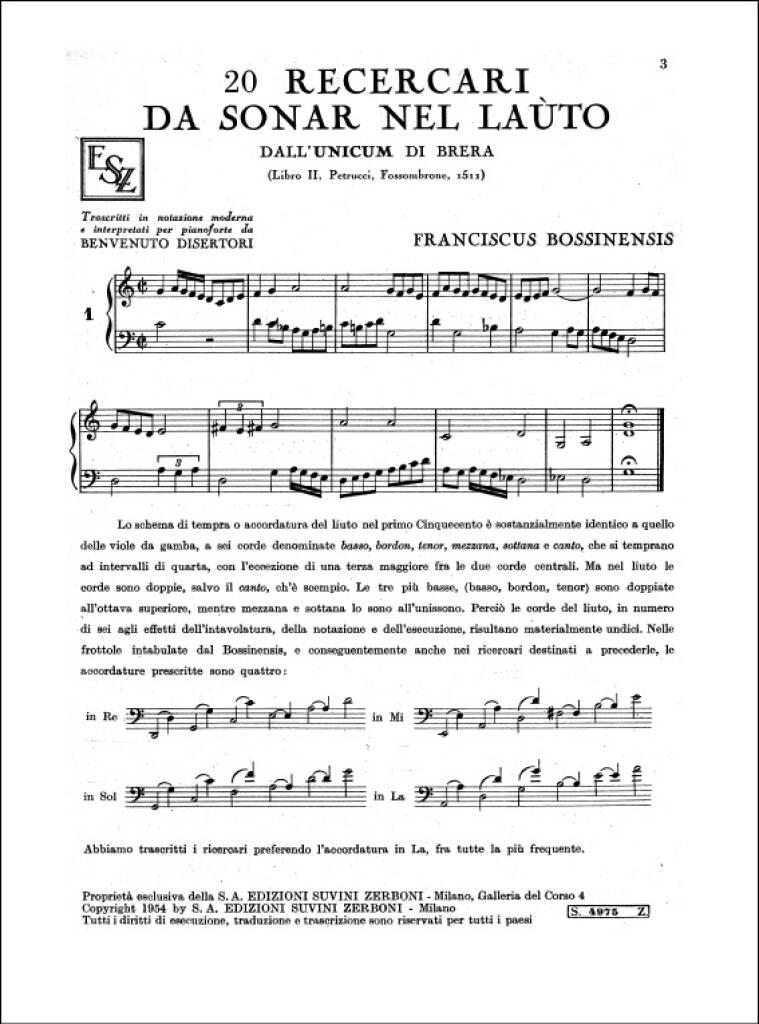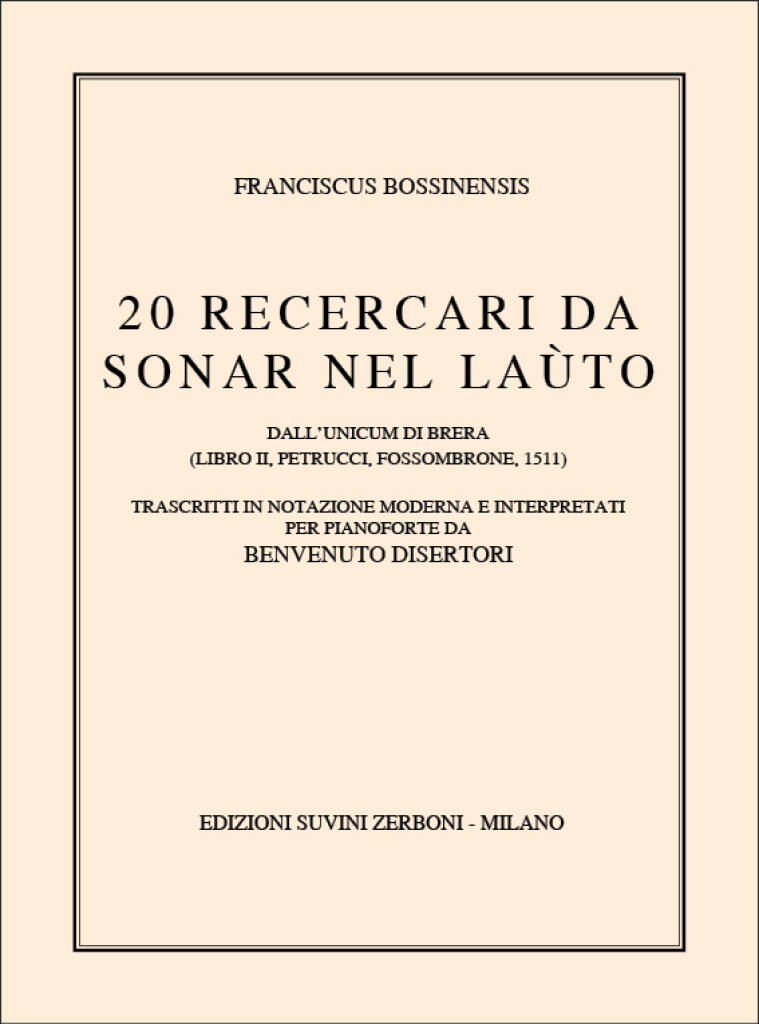 Venti Ricercari da Sonar Nel Lauto Per Liuto BOSSINENSIS FRANCISCUS