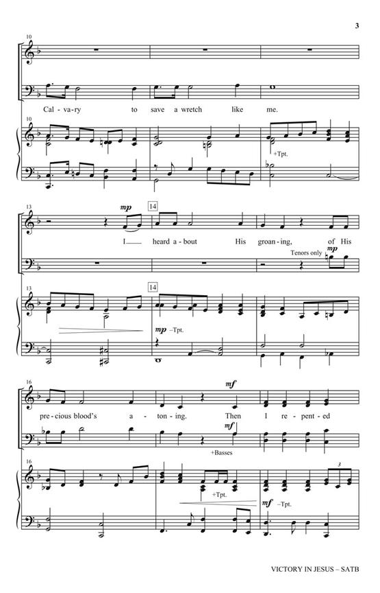 Utilisations : Général, Réveil, Carême Écritures : I Corinthiens 15:57, Romains 8:37, Romains 8:1, I Timothée 6:12 Un classique moderne de l’hymne est arrangé avec une touche respectueuse, l’élevant de nombreuses versions évangéliques et restaurant son esprit confiant. La partie de trompette brille de vie et l’accompagnement au piano est plein et presque orchestral dans son timbre. Une écriture solide en quatre parties renforce et ce message de confiance, d’assurance et de rédemption est approprié à tout moment. Toujours un favori de la congrégation !