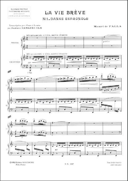 Vie Breve: Danse Espagnole N 1 Pour Piano A Quatre Mains (G. Samazeuilh) FALLA MANUEL DE