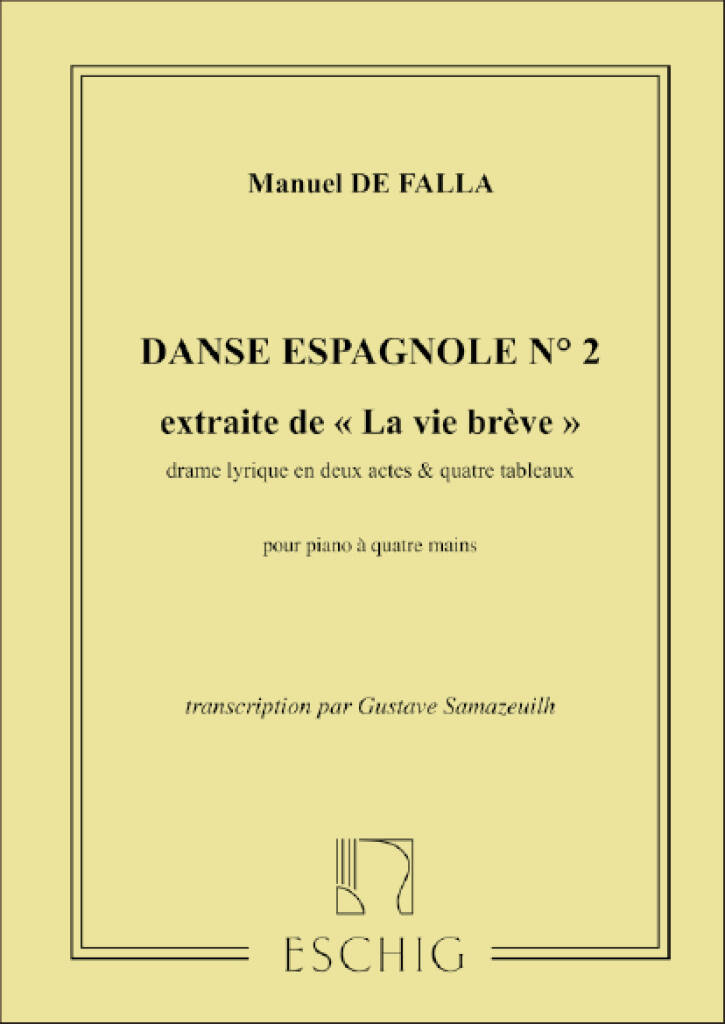 Vie Breve: Danse Espagnole N 2 Pour Piano A Quatre Mains (G. Samazeuilh) FALLA MANUEL DE