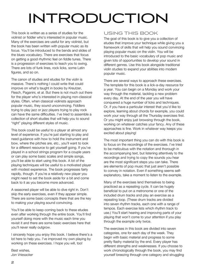 Techniques taught include scales, ornaments, rhythm/feel, bowing, arpeggios, playing with others, and stretching out. These exercises will improve facile technique, intonation, style vocabulary, rhythmic acuity, ensemble playing, and more.