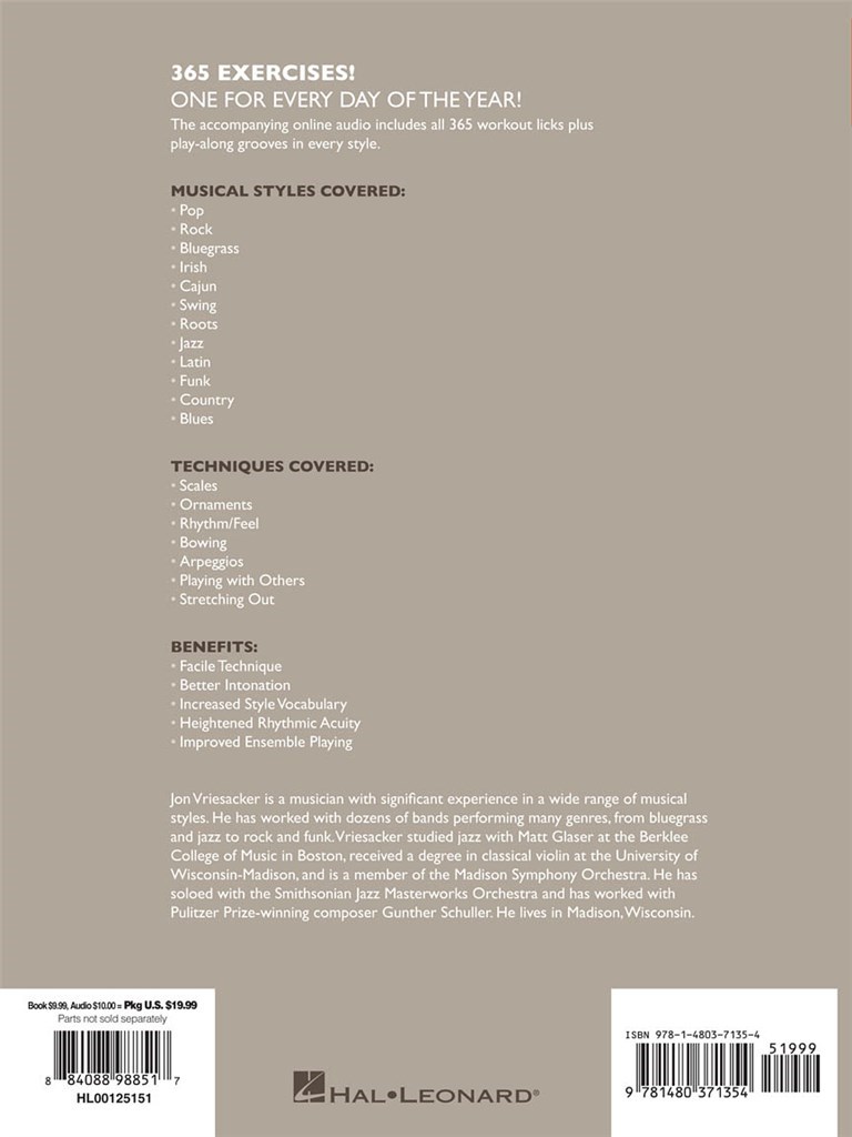 Here is a daily dose of vitamins to keep your chops fine tuned! 365 exercises - one for every day of the year. Musical styles include pop, rock, bluegrass, Irish, jazz, funk, and more.