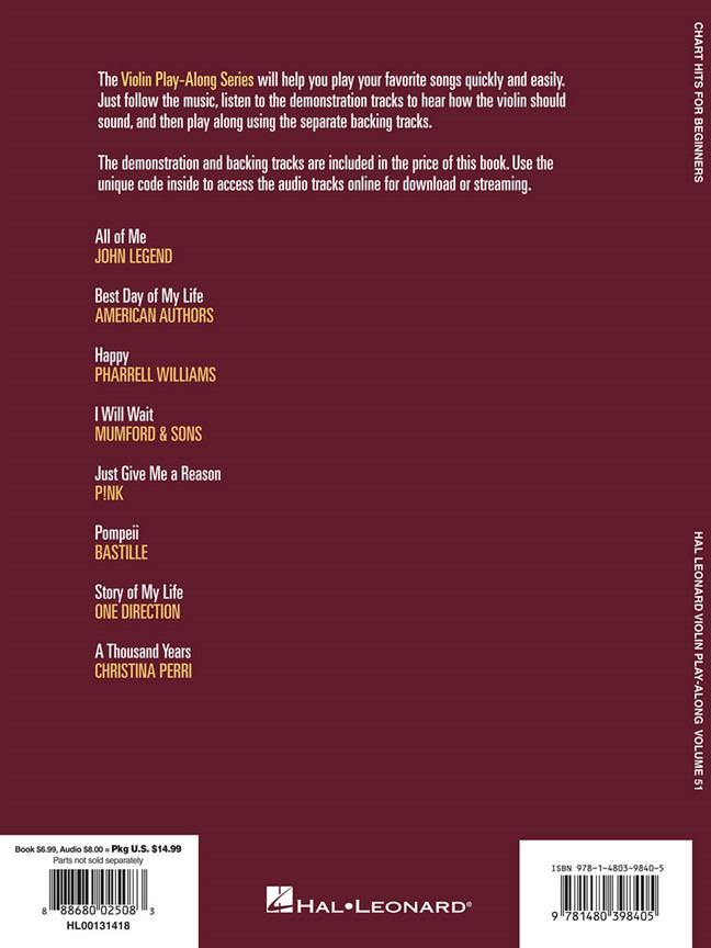 Violin Play Along Vol.051 Chart Hits For Beginners
