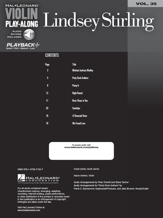 Ce volume du violon Play-Along série est une collection unique de célèbres chansons pop qui ont été organisées par Violoniste altenative, Lindsey Stirling.