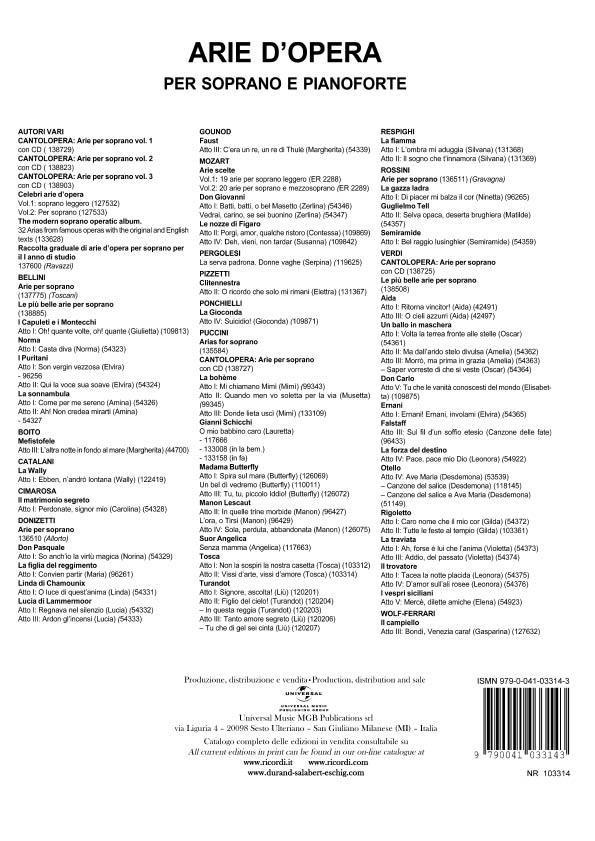 Dall'Opera Tosca Per Canto E Pianoforte